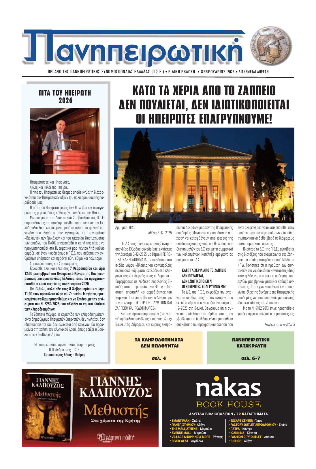 Κυκλοφόρησε η εφημερίδα της Πανηπειρωτικής.